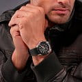 Внутри установлен швейцарский кварцевый механизм, обеспечивающий высокую точность хода. Функции включают хронографХронографФункция позволяет измерять отрезки времени с особой точностью: часы, минуты, секунды. Верным признаком хронографа является наличие на циферблате 3 дополнительных окошек-счётчиков. и тахиметрическую шкалу, позволяющие измерять скорость и промежутки времени.
