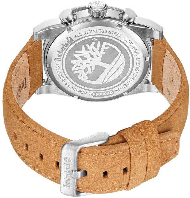 Американские мужские часы Timberland TDWGF0009404 с тахиметромТахиметрРазмеченная шкала, располагается на ободке или безеле часов. Тахиметр позволяет рассчитать скорость на определённом участке пути, расстояние измеряется в километрах или милях. имеют кварцевый механизм с высокой точностью. Класс водозащиты: 50 метров, позволит защитить корпус от случайных брызг или капель дождя. Корпус часов изготовлен из стали. Прочное минеральное стеклоМинеральное стеклоМинеральное стекло представляет собой искусственно выращенный минерал кварца. Такое стекло отличается особой устойчивостью к повреждениям и царапинам. Уступает по некоторым качествам сапфировому стеклу.. Стрелки c люминесцентным покрытиемЛюминесцентное покрытиеПозволяет считывать показания времени в темноте. Производители наносят на стрелки, часовые индексы, безель или поверхность циферблата светонакопительный состав, дающий холодное свечение.. Кожаный ремешок с классической застежкой и системой быстрой замены.