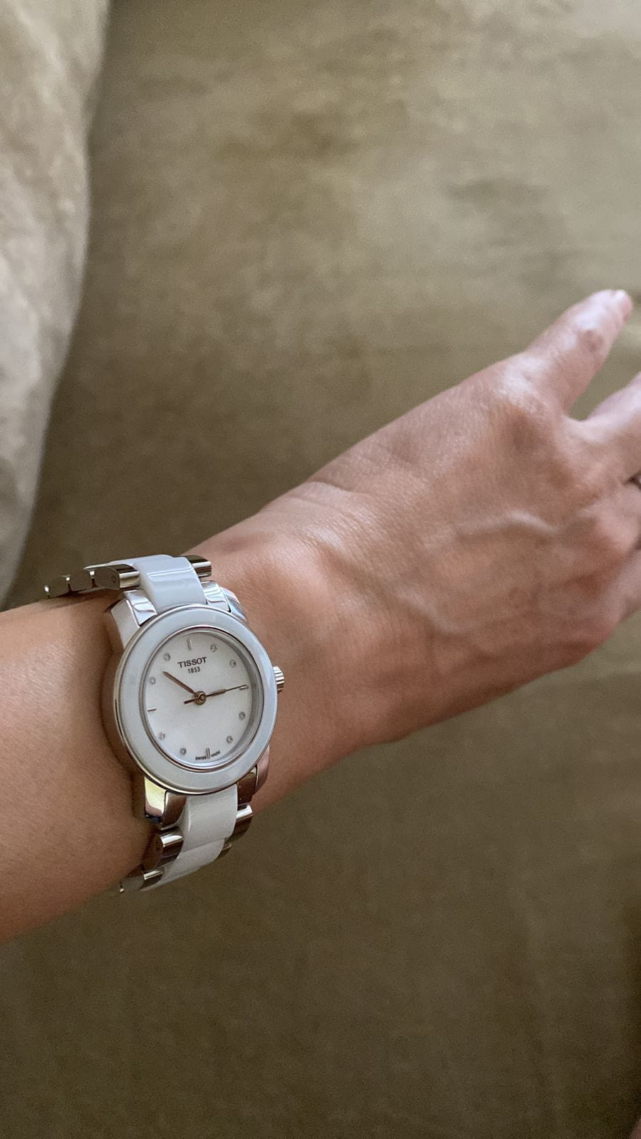 Модель в серебристо-белом оформлении станет изящным украшением к вечернему платью или классическому костюму. Для изготовления часов использовались современные материалы: хирургическая сталь и керамика, отличающаяся гипоаллергенными свойствами. Керамика принимает температурный режим тела человека и обеспечивает комфорт при ношении. Циферблат инкрустирован бриллиантами, имеющими законное происхождение. Кварцевый механизм ETA F03.111. Функция EOLEOLПредставляет собой систему, уведомляющую владельца часов о необходимости замены элемента питания. За 2 недели до полного разряда батарейки секундная стрелка перестаёт ходить чётко и начинает перепрыгивать на 3-4 деления.. Габариты: 28 x 28 x 6,4 мм.