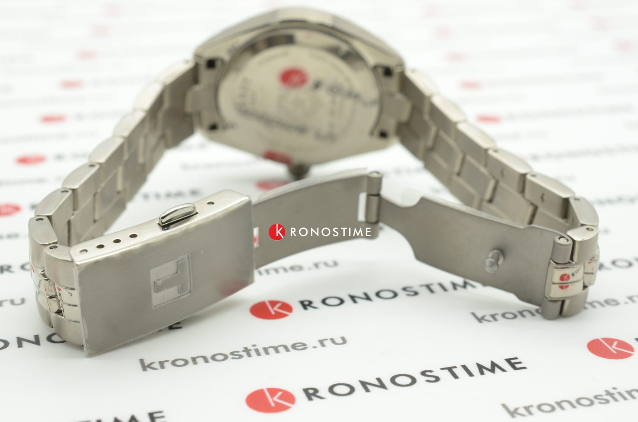 Главной особенностью аксессуара являются титановый корпус и браслет. Материал отличается устойчивостью к ударам и не вызывает аллергии даже на чувствительной коже. Кварцевый высокоточный механизм ETA 956.412. Сапфировое стекло. Люминесцентная подсветкаЛюминесцентное покрытиеПозволяет считывать показания времени в темноте. Производители наносят на стрелки, часовые индексы, безель или поверхность циферблата светонакопительный состав, дающий холодное свечение. стрелок. . Функции: дата, EOLEOLПредставляет собой систему, уведомляющую владельца часов о необходимости замены элемента питания. За 2 недели до полного разряда батарейки секундная стрелка перестаёт ходить чётко и начинает перепрыгивать на 3-4 деления.. Габариты: 33 x 33 x 9 мм.