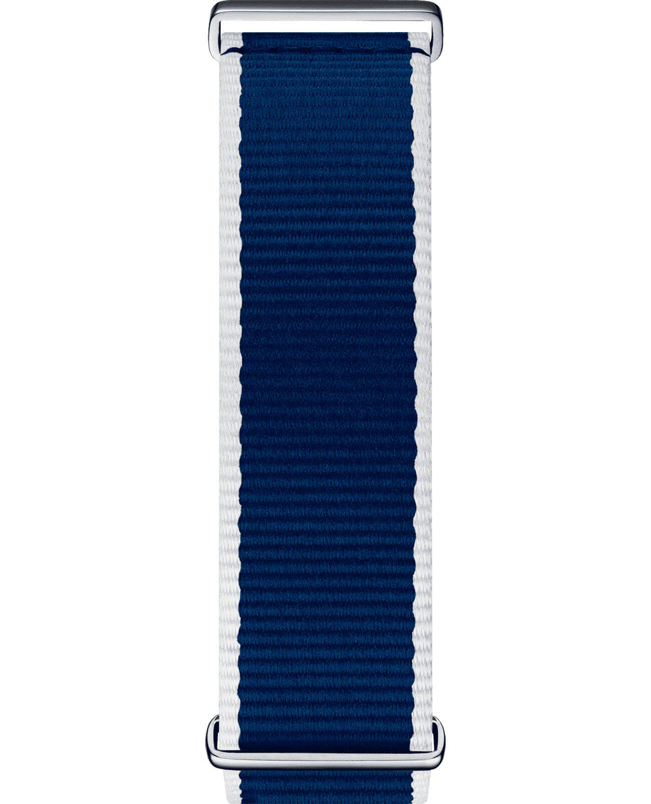 Белый циферблат идеально сочетается с ярким безелемБезельВнешний ободок, закрепляющий стекло. В спортивных часах так называется поворотное кольцо с делениями на циферблате, выполняет роль таймера – замеряет отрезки времени на шкале. Неподвижный безель – элемент декора. Однонаправленно вращающийся безель на дайверских часах позволяет фиксировать моменты погружения и выныривания на поверхность. с PVD-покрытиемPVDУльтратонкое покрытие наносится в технике вакуумного напыления, сочетает в себе нитрид титана особой прочности со слоем золота или оксида хрома. Несёт в себе декоративную или защитную функцию. насыщенно-синего цвета. Оригинально выглядит тканевый ремешок NATO белого цвета, украшенный волнами синего и красного оттенка. Такой материал обеспечивает максимальный комфорт при ношении и отличается лёгкостью. Высокая точность хода обеспечивается кварцевым механизмом ETA G10.211. Стекло из сапфира. Класс водозащиты WR 100. ХронографХронографФункция позволяет измерять отрезки времени с особой точностью: часы, минуты, секунды. Верным признаком хронографа является наличие на циферблате 3 дополнительных окошек-счётчиков., секундомер, индикация текущего числа, тахиметрТахиметрРазмеченная шкала, располагается на ободке или безеле часов. Тахиметр позволяет рассчитать скорость на определённом участке пути, расстояние измеряется в километрах или милях.. Габариты: 42 x 42 x 10,7 мм.