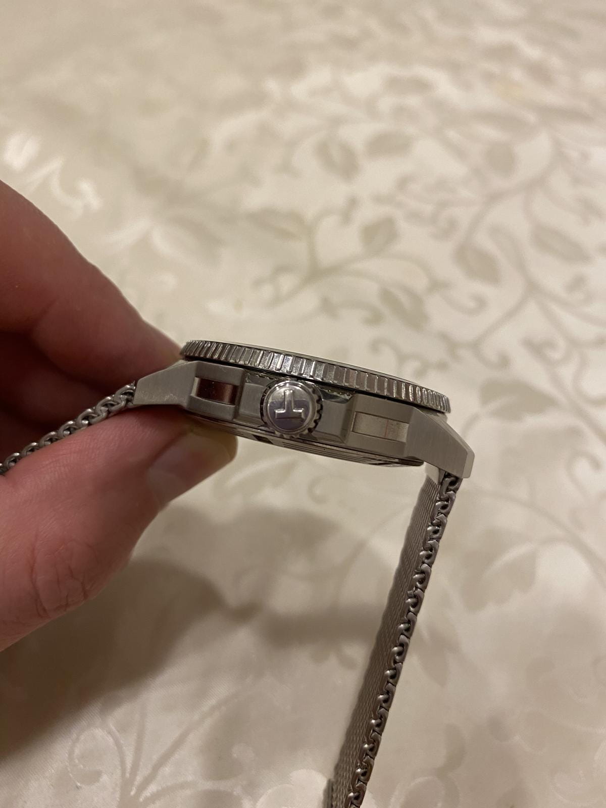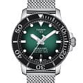 Перед Новым годом стал обладателем часов T120.407.11.091.00 TISSOT SEASTAR 1000 POWERMATIC 80. Всегда отдавал предпочтение дайверским часам, из-за классного внешнего вида, неубиваемости, прекрасного люма и др. Пользовался часами «Восток» ( бочка) и Ориент Рэй-2, но всегда засматривался на данную модель Тиссот. И вот , ознакомившись со всей информацией в интернете, я решился на приобретение данных часов. Хотел именно на миланском браслете из-за отличного внешнего вида, удобства и не большого веса. И так, часы сидят удобно на моем запястье 17,5 см. Не тяжелые ( вес 147 гр. ). Ощущаются комфортно. Зелёный циферблат смотрится просто сногсшибательно. Керамический безель и сапфировое стекло очень красиво отсвечивают и отражают. Безель однонаправленный на 120 кликов. Люм виден всю ночь. Окошко даты легко читается. Несмотря на толщину в 12,7 мм. часы смотрятся очень элегантно. Задняя крышка завинчивающаяся, прозрачная. Погрешность хода на моих часах +1 секунда в сутки, что очень хороший результат для механики. Про механизм Powermatic 80.111 ходят много мнений и слухов по поводу наличия в нём композитных частей в механизме. Кто-то пишет что они пластиковые, что является полным бредом. Ближе к истине то , что данные детали изготовлены из композитного материала на основе карбона, которые гораздо долговечнее металла. Смотрел видео, где люди, имеющие не последнее место в часовом бизнесе сказали , что последние два года в данный механизм устанавливаются только железные части. В любом случае, негативных отзывов о данном мехе не найдено не одного, а он выпущен с 2013 года. Поэтому я уверен , что данные часы прослужат не одно десятилетие верой и правдой. Подводя итог хочу сказать ,что часы просто великолепны во всех аспектах. А покупать их или нет, это уже дело каждого.