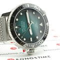 На фоне серебристого браслета и темного безеляБезельВнешний ободок, закрепляющий стекло. В спортивных часах так называется поворотное кольцо с делениями на циферблате, выполняет роль таймера – замеряет отрезки времени на шкале. Неподвижный безель – элемент декора. Однонаправленно вращающийся безель на дайверских часах позволяет фиксировать моменты погружения и выныривания на поверхность. ярко выделяется зеленый циферблат, отлично видны серебристые стрелки и часовые метки с люминесцентным покрытиемЛюминесцентное покрытиеПозволяет считывать показания времени в темноте. Производители наносят на стрелки, часовые индексы, безель или поверхность циферблата светонакопительный состав, дающий холодное свечение.. Механические часы с автоподзаводом оснащены швейцарским механизмом Powermatic 80Powermatic 80Эксклюзивный калибр от швейцарской компании ETA с увеличенным запасом хода до 80 часов за счёт удлинённой заводной пружины. Характеризуется улучшенной системой спуска со сниженным трением. с запасом хода 80 часов. Завинчивающиеся кнопки, головка, прозрачная задняя крышка. Сапфировое стекло. Апертура даты. Габариты: 43 x 43 x 12,7 мм.