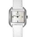 Наручные часы будут идеально смотреться в любой ситуации, навсегда оставаясь модным и актуальным аксессуаром, квадратный корпус отлично смотрится на запястье. Циферблат из белого перламутра дополнен изящными стрелками, по форме напоминающие лепестки. Кварцевый механизм ETA 901.005 поддерживает высокую точность хода. Стекло из сапфира. Ремешок белого цвета из натуральной кожи. Водостойкость 30 метров. Габариты: 23,6 x 23,6 x 7,2 мм.