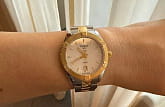 Наручные часы обладают классическим дизайном, за счёт чего аксессуар можно носить как с деловым костюмом на работу, так и с вечерним нарядом. Модель из нержавеющей стали имеет PVD-покрытиеPVDУльтратонкое покрытие наносится в технике вакуумного напыления, сочетает в себе нитрид титана особой прочности со слоем золота или оксида хрома. Несёт в себе декоративную или защитную функцию. в цвете жёлтого золота, что привносит в общее исполнение оттенок роскоши. Кварцевый швейцарский механизм ETA 955.412 с высокой точностью хода. Люминесцентная подсветкаЛюминесцентное покрытиеПозволяет считывать показания времени в темноте. Производители наносят на стрелки, часовые индексы, безель или поверхность циферблата светонакопительный состав, дающий холодное свечение.. Сапфировое стекло. . Календарь. Габариты: 36 x 36 x 9 мм.