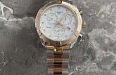 Швейцарские наручные часы имеют перламутровый циферблат, инкрустированный бриллиантами, драгоценные камни используются вместо меток часов. Корпус и центральные звенья браслета имеют PVD-покрытие цвета розового золота, оно характеризуется долговечностью и устойчивостью к царапинам. Кварцевый механизм ETA G15.212. Водонепроницаемость 100 метров. Хронограф, секундомер, апертура даты. Габариты: 38 x 38 x 10,5 мм.