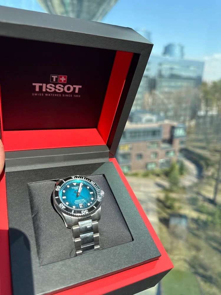 Страх, что пришлют подделку, исчез, как только я зарегистрировал гарантию на сайте Tissot. Часы на ощупь явно оригинал. Сразу испытал их в деле, брал в море. Хоть и не нырял с аквалангом, но поплавал с маской на несколько метров в соленой воде. Часы прошли проверку на отлично.