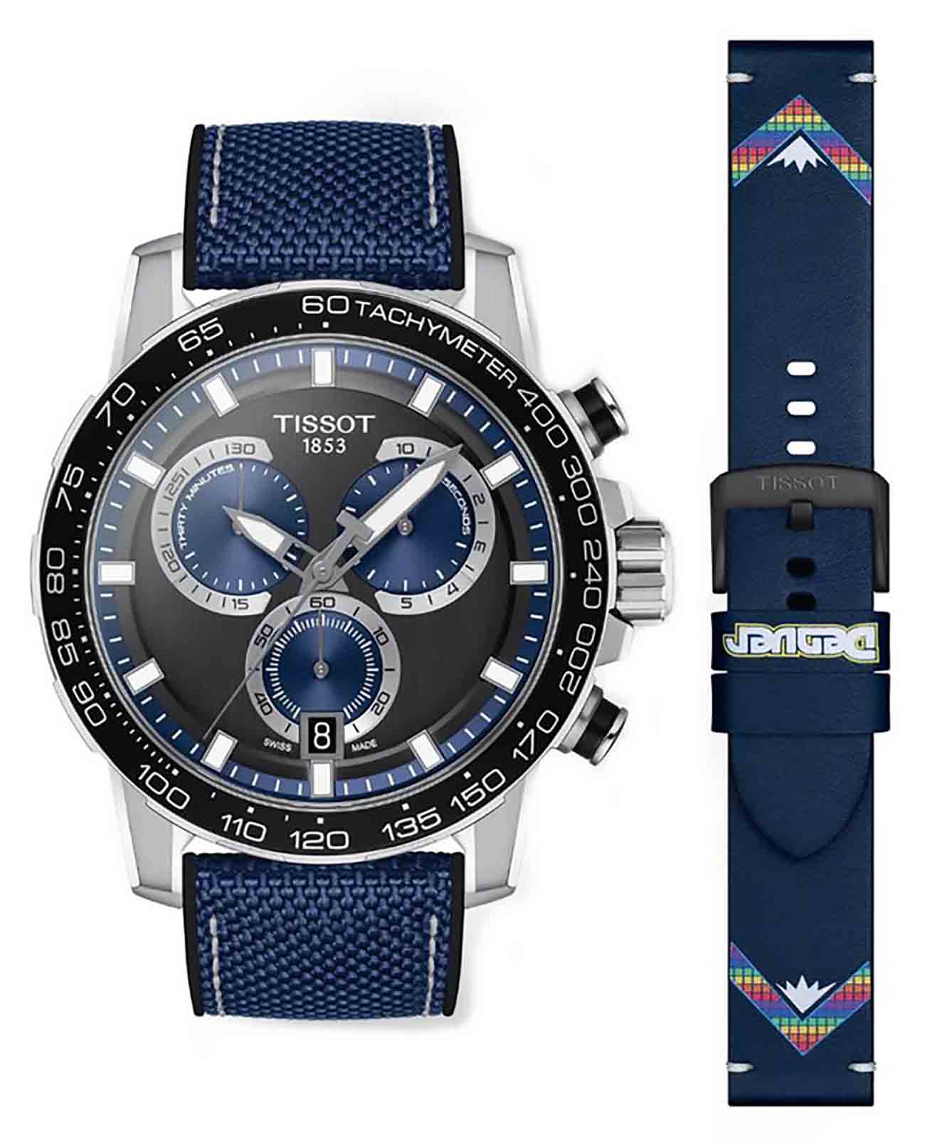 Tissot отмечает чемпионство НБА выпуском часов Denver Nuggets 2023 NBA Champions Supersport Chrono. Эти часы — квинтэссенция современной спортивности: большой хронограф (45,5 мм) с кварцевым механизмом и внушительные индексы обеспечивают лучшую видимость времени и придают глубину циферблату. Эти часы, выпущенные ограниченным тиражом, имеют заднюю крышку с гравировкой и дополнительный кожаный ремешок Denver Nuggets в память о чемпионах НБА 2023 года и их выступлениях на площадке. Массивный циферблат с крупной индикацией времени, симметричным расположением окошек – важная деталь для делового мужчины, привыкшего всё делать вовремя. Швейцарский кварцевый механизм. Сапфировое стеклоСапфировое стеклоПрочный и надёжный материал из кристалла сапфира синтетического происхождения, характеризующийся особой твёрдостью и устойчивостью к царапинам и повреждениям.. Корпус из нержавеющей стали 316L. БезельБезельВнешний ободок, закрепляющий стекло. В спортивных часах так называется поворотное кольцо с делениями на циферблате, выполняет роль таймера – замеряет отрезки времени на шкале. Неподвижный безель – элемент декора. Однонаправленно вращающийся безель на дайверских часах позволяет фиксировать моменты погружения и выныривания на поверхность. размечен шкалой тахиметраТахиметрРазмеченная шкала, располагается на ободке или безеле часов. Тахиметр позволяет рассчитать скорость на определённом участке пути, расстояние измеряется в километрах или милях.. Водонепроницаемость до 10 бар. Люминесцентная подсветкаЛюминесцентное покрытиеПозволяет считывать показания времени в темноте. Производители наносят на стрелки, часовые индексы, безель или поверхность циферблата светонакопительный состав, дающий холодное свечение.. СекундомерСекундомерСекундоме́р — прибор, способный измерять интервалы времени с точностью до долей секунды., хронографХронографФункция позволяет измерять отрезки времени с особой точностью: часы, минуты, секунды. Верным признаком хронографа является наличие на циферблате 3 дополнительных окошек-счётчиков., индикация числа. Длина и ширина корпуса: 45,5 мм.