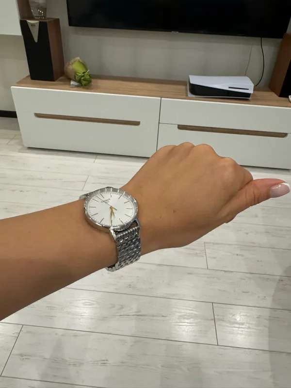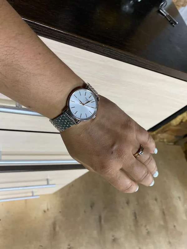 Кварцевый механизм с высокой точностью. Сапфировое стеклоСапфировое стеклоПрочный и надёжный материал из кристалла сапфира синтетического происхождения, характеризующийся особой твёрдостью и устойчивостью к царапинам и повреждениям. устойчивое к появлению царапин, обладающее высокой прозрачностью. Класс водозащиты: 50 метров, позволит защитить корпус от случайных брызг или капель дождя. Корпус часов изготовлен из нержавеющей стали. Браслет с застёжкой «бабочка» с кнопкамиЗастёжка "бабочка"Такой вид застёжки дополняется предохранителями, помогающими избежать случайного раскрытия браслета. Обладают изящным исполнением. .