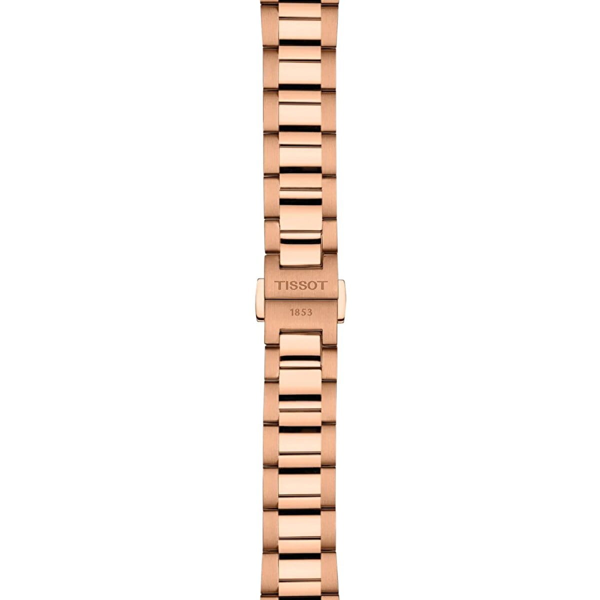Женские кварцевые часы Tissot из коллекции T-Classic — это элегантный аксессуар с швейцарским качеством. Модель PR 100, выпущенная в сезоне Осень/Зима 2025, сочетает классический дизайн и надёжность. Корпус диаметром 34 мм и толщиной 8,3 мм выполнен из нержавеющей стали с PVD-покрытиемPVDУльтратонкое покрытие наносится в технике вакуумного напыления, сочетает в себе нитрид титана особой прочности со слоем золота или оксида хрома. Несёт в себе декоративную или защитную функцию. розового золота. Циферблат коричневого цвета оформлен индексами и стрелками розового золота. Циферблат защищён сапфировым стекломСапфировое стеклоПрочный и надёжный материал из кристалла сапфира синтетического происхождения, характеризующийся особой твёрдостью и устойчивостью к царапинам и повреждениям.. Механизм — швейцарский кварцевый калибр ETA F05.115, питание от батарейки Renata R371 со сроком службы до 68 месяцев. Заводная головка вытягивается для настройки времени. Часы оснащены стальным браслетом с застёжкой «бабочка» с кнопкамиЗастёжка "бабочка"Такой вид застёжки дополняется предохранителями, помогающими избежать случайного раскрытия браслета. Обладают изящным исполнением. , шириной 16 мм, с системой быстрого крепления и прямой фиксацией. Ремешок подходит для запястьев длиной от 140 до 190 мм. Завинчивающаяся задняя крышка обеспечивает защиту механизма. Водонепроницаемость 100 м позволяет использовать часы для плавания. Идеальный выбор для тех, кто ценит стиль, точность и швейцарское мастерство.
