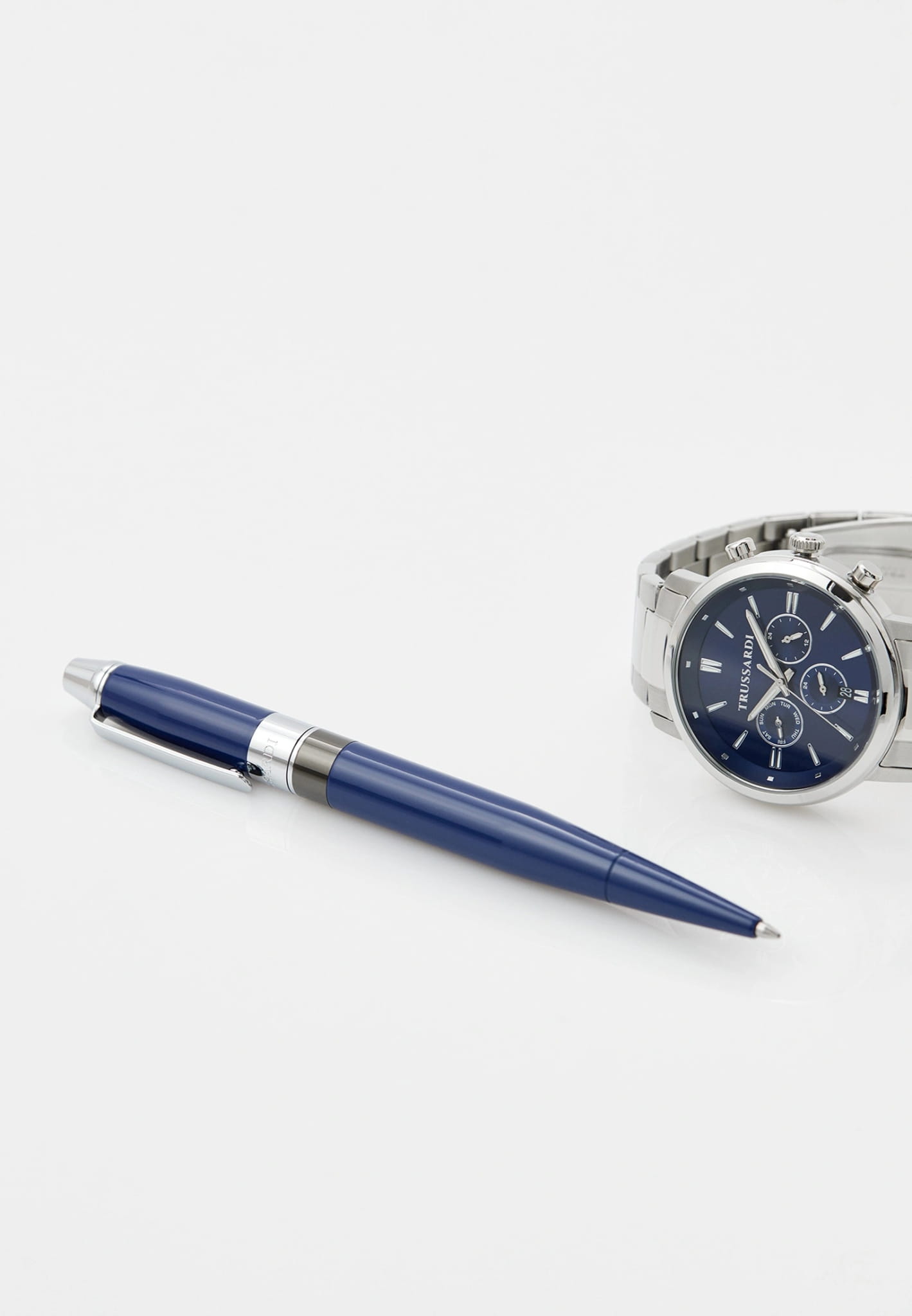 Итальянские мужские часы Trussardi T-Couple R2453147018 - это стильный мужской аксессуар, который сочетает элегантный дизайн и практичность. Корпус выполнен из нержавеющей стали, что обеспечивает долговечность и утончённый внешний вид. Надежное минеральное стеклоМинеральное стеклоМинеральное стекло представляет собой искусственно выращенный минерал кварца. Такое стекло отличается особой устойчивостью к повреждениям и царапинам. Уступает по некоторым качествам сапфировому стеклу. защищает циферблат от царапин и обеспечивает долговечность. Модель оснащена кварцевым механизмом, обеспечивающим высокую точность хода. Браслет из нержавеющей стали с раскладной застёжкойРаскладная застёжкаТакой тип застёжки используется только на браслетах из металла. Она никогда не раскрывается полностью, происходит разделение на 2 и более частей. Раскладывающая застёжка снизит вероятность потери часов к минимуму. обеспечивает комфортное ношение. Водозащита 50 метров позволит защитить корпус от случайных брызг или капель дождя. Вынесенный циферблат с 24-х часовым указателем времени, второй часовой пояс в 24-х часовом формате, а также вынесенный циферблат с указателем дня недели. Окошко даты в положении 6 часов. Стрелки и метки оснащены люминесцентным покрытиемЛюминесцентное покрытиеПозволяет считывать показания времени в темноте. Производители наносят на стрелки, часовые индексы, безель или поверхность циферблата светонакопительный состав, дающий холодное свечение., обеспечивающим отличную видимость даже при слабом освещении. Эта модель – отличный выбор для тех, кто ищет сочетание стиля, качества и функциональности. Часы станут не только полезным аксессуаром, но и выразительным элементом вашего имиджа. В наборе с часами идет шариковая ручка.