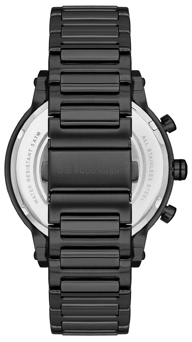 Мужские часы часы U.S. Polo Assn. Crossing USPA1008-12, кварцевый механизм с высокой точностью. Минеральное стеклоМинеральное стеклоМинеральное стекло представляет собой искусственно выращенный минерал кварца. Такое стекло отличается особой устойчивостью к повреждениям и царапинам. Уступает по некоторым качествам сапфировому стеклу. устойчивое к появлению царапин, обладающее высокой прозрачностью. Центральные часовая, минутная и секундная стрелки. Индикация даты и дня недели. 12/24х часовой формат времени. Корпус изготовлен из нержавеющей стали с IP-покрытиемIP-покрытиеМетод ионного напыления. Демонстрирует повышенную устойчивость к истиранию, окислению и химическим веществам. Под воздействием высокого давления и температуры около 1500°C молекулы металла надёжно соединяются с частицами корпуса часов.. На циферблате три дополнительных индикатора. Стрелки и метки с люминесцентным покрытиемЛюминесцентное покрытиеПозволяет считывать показания времени в темноте. Производители наносят на стрелки, часовые индексы, безель или поверхность циферблата светонакопительный состав, дающий холодное свечение.. Класс водозащиты: 50 метров, позволит защитить корпус от случайных брызг или капель дождя. Стальной браслет на раскладной застёжкеРаскладная застёжкаТакой тип застёжки используется только на браслетах из металла. Она никогда не раскрывается полностью, происходит разделение на 2 и более частей. Раскладывающая застёжка снизит вероятность потери часов к минимуму. с IP-покрытиемIP-покрытиеМетод ионного напыления. Демонстрирует повышенную устойчивость к истиранию, окислению и химическим веществам. Под воздействием высокого давления и температуры около 1500°C молекулы металла надёжно соединяются с частицами корпуса часов..