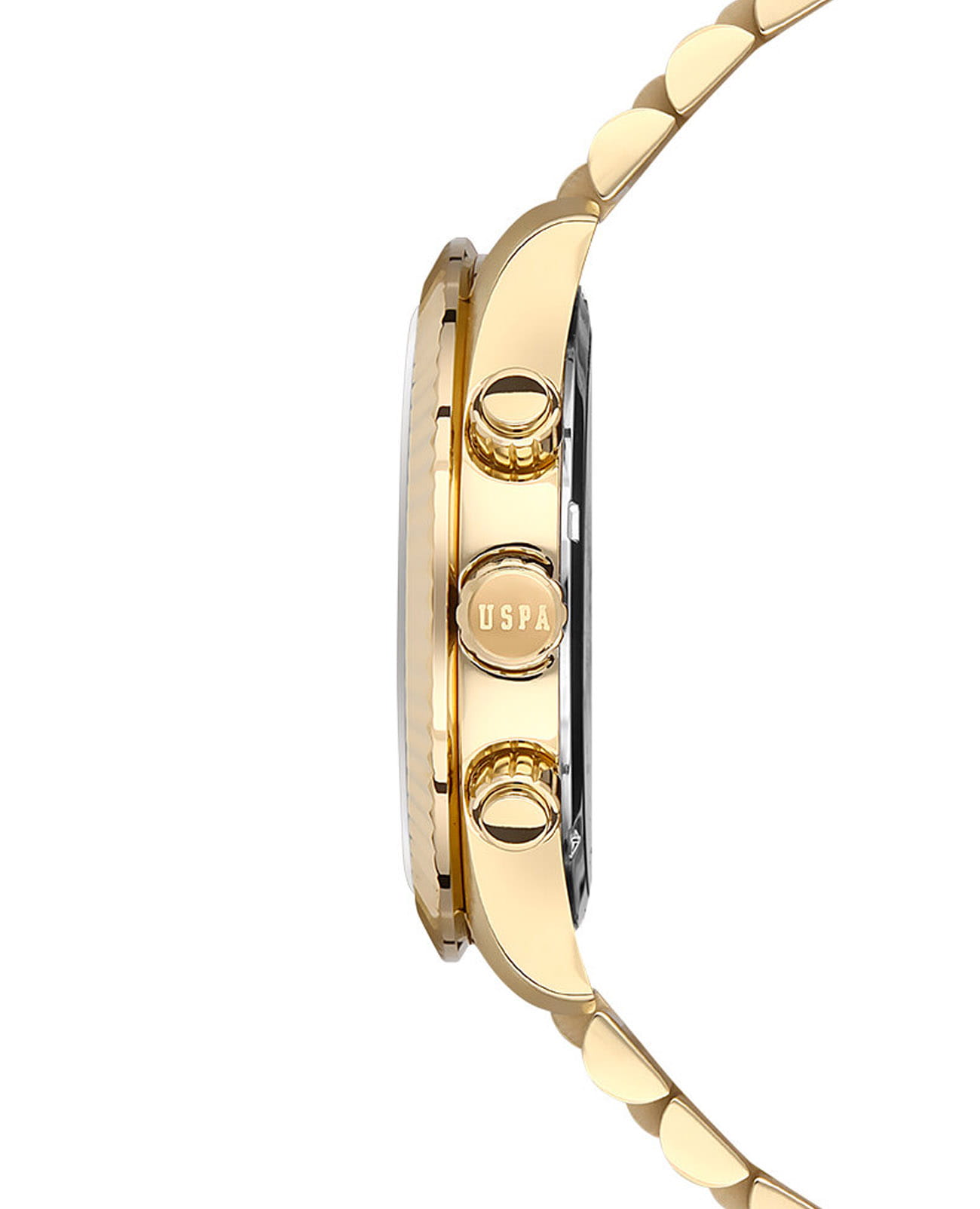 Мужские часы U.S. Polo Assn. Crossing USPA1054-05, кварцевый механизм с высокой точностью. Минеральное стеклоМинеральное стеклоМинеральное стекло представляет собой искусственно выращенный минерал кварца. Такое стекло отличается особой устойчивостью к повреждениям и царапинам. Уступает по некоторым качествам сапфировому стеклу. устойчивое к появлению царапин, обладающее высокой прозрачностью. Корпус изготовлен из нержавеющей стали с IP-покрытиемIP-покрытиеМетод ионного напыления. Демонстрирует повышенную устойчивость к истиранию, окислению и химическим веществам. Под воздействием высокого давления и температуры около 1500°C молекулы металла надёжно соединяются с частицами корпуса часов.. Центральные часовая, минутная и секундная стрелки. Индикация даты и дня недели. 12/24х часовой формат времени. Стрелки с люминесцентным покрытиемЛюминесцентное покрытиеПозволяет считывать показания времени в темноте. Производители наносят на стрелки, часовые индексы, безель или поверхность циферблата светонакопительный состав, дающий холодное свечение.. Класс водозащиты: 50 метров, позволит защитить корпус от случайных брызг или капель дождя. Стальной браслет с IP-покрытиемIP-покрытиеМетод ионного напыления. Демонстрирует повышенную устойчивость к истиранию, окислению и химическим веществам. Под воздействием высокого давления и температуры около 1500°C молекулы металла надёжно соединяются с частицами корпуса часов. на раскладной застёжкеРаскладная застёжкаТакой тип застёжки используется только на браслетах из металла. Она никогда не раскрывается полностью, происходит разделение на 2 и более частей. Раскладывающая застёжка снизит вероятность потери часов к минимуму..