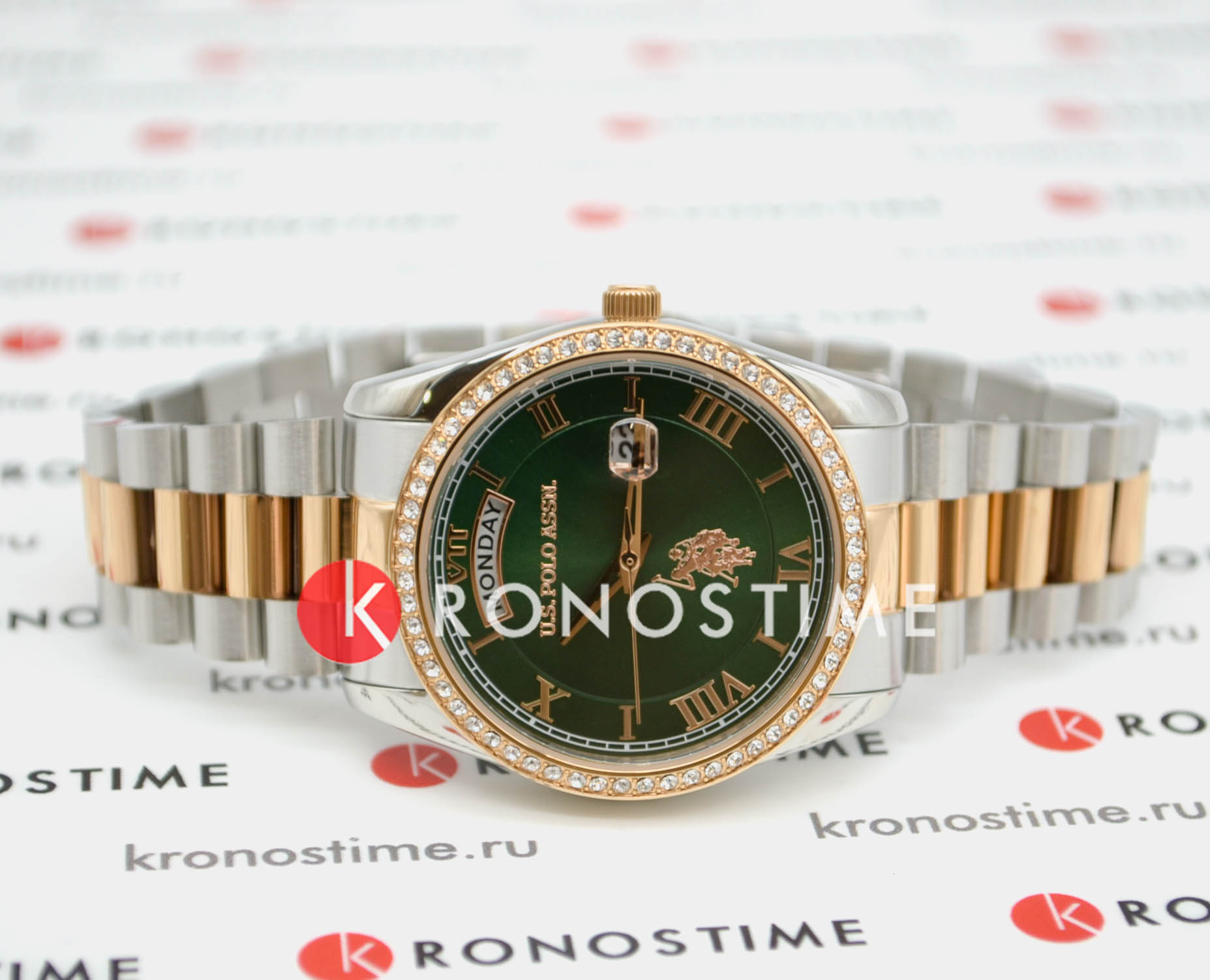 Женские часы U.S. Polo Assn. Stile USPA2054-05, кварцевый механизм с высокой точностью. Минеральное стеклоМинеральное стеклоМинеральное стекло представляет собой искусственно выращенный минерал кварца. Такое стекло отличается особой устойчивостью к повреждениям и царапинам. Уступает по некоторым качествам сапфировому стеклу. устойчивое к появлению царапин, обладающее высокой прозрачностью. Корпус изготовлен из нержавеющей стали. БезельБезельВнешний ободок, закрепляющий стекло. В спортивных часах так называется поворотное кольцо с делениями на циферблате, выполняет роль таймера – замеряет отрезки времени на шкале. Неподвижный безель – элемент декора. Однонаправленно вращающийся безель на дайверских часах позволяет фиксировать моменты погружения и выныривания на поверхность. из нержавеющей стали с IP-покрытиемIP-покрытиеМетод ионного напыления. Демонстрирует повышенную устойчивость к истиранию, окислению и химическим веществам. Под воздействием высокого давления и температуры около 1500°C молекулы металла надёжно соединяются с частицами корпуса часов. и украшен кристаллами. Окошко даты в положении 3 часов, окошко дня недели в положении 12 часов. Класс водозащиты: 30 метров, позволит защитить корпус от случайных брызг или капель дождя. Стальной браслет с частичным IP-покрытиемIP-покрытиеМетод ионного напыления. Демонстрирует повышенную устойчивость к истиранию, окислению и химическим веществам. Под воздействием высокого давления и температуры около 1500°C молекулы металла надёжно соединяются с частицами корпуса часов. на застёжке «бабочка» с кнопкамиЗастёжка "бабочка"Такой вид застёжки дополняется предохранителями, помогающими избежать случайного раскрытия браслета. Обладают изящным исполнением. .