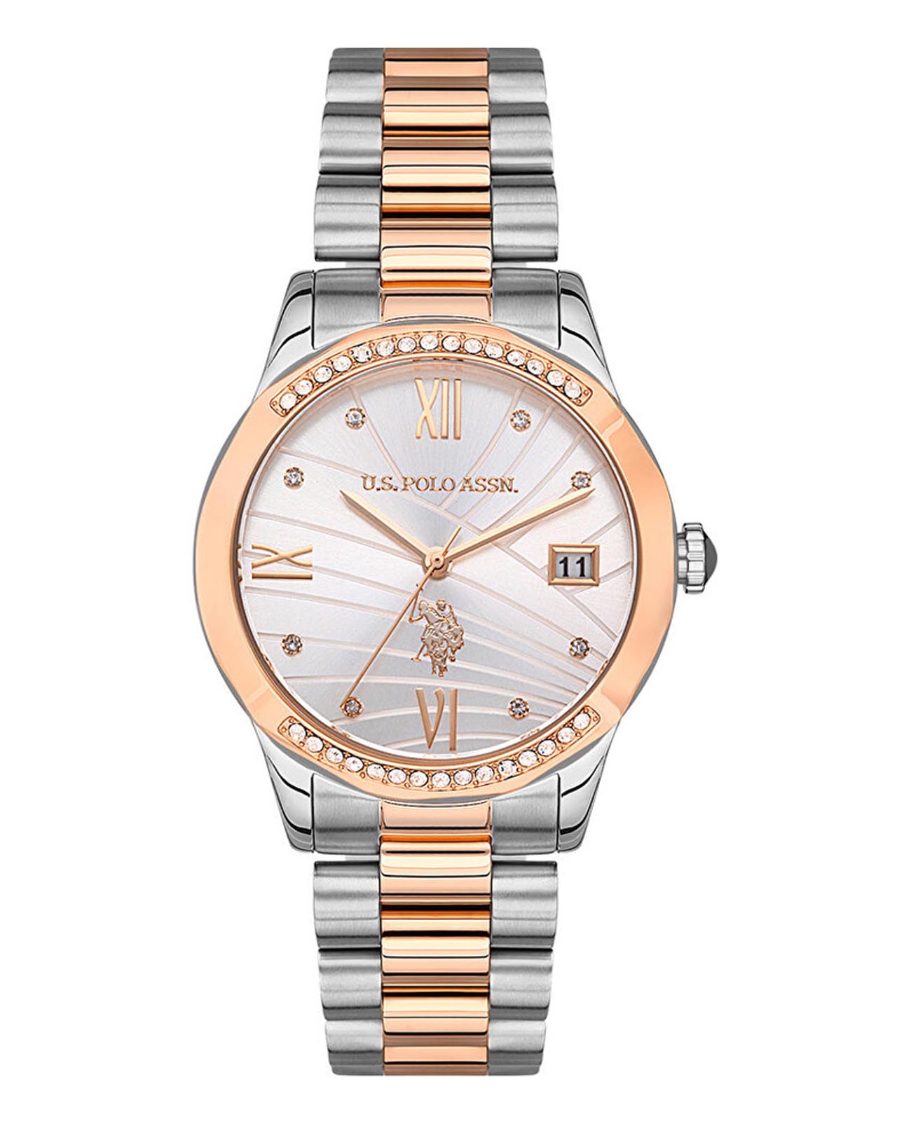 Женские часы U.S. Polo Assn Stile USPA2059-04, кварцевый механизм с высокой точностью. Минеральное стеклоМинеральное стеклоМинеральное стекло представляет собой искусственно выращенный минерал кварца. Такое стекло отличается особой устойчивостью к повреждениям и царапинам. Уступает по некоторым качествам сапфировому стеклу. устойчивое к появлению царапин, обладающее высокой прозрачностью. Корпус изготовлен из нержавеющей стали. БезельБезельВнешний ободок, закрепляющий стекло. В спортивных часах так называется поворотное кольцо с делениями на циферблате, выполняет роль таймера – замеряет отрезки времени на шкале. Неподвижный безель – элемент декора. Однонаправленно вращающийся безель на дайверских часах позволяет фиксировать моменты погружения и выныривания на поверхность. с IP-покрытиемIP-покрытиеМетод ионного напыления. Демонстрирует повышенную устойчивость к истиранию, окислению и химическим веществам. Под воздействием высокого давления и температуры около 1500°C молекулы металла надёжно соединяются с частицами корпуса часов. и циферблат украшены кристаллами. Окошко даты в положении 3 часа. Класс водозащиты: 30 метров, позволит защитить корпус от случайных брызг или капель дождя. Стальной браслет с IP-покрытиемIP-покрытиеМетод ионного напыления. Демонстрирует повышенную устойчивость к истиранию, окислению и химическим веществам. Под воздействием высокого давления и температуры около 1500°C молекулы металла надёжно соединяются с частицами корпуса часов. на застёжка «бабочка» с кнопкамиЗастёжка "бабочка"Такой вид застёжки дополняется предохранителями, помогающими избежать случайного раскрытия браслета. Обладают изящным исполнением. .