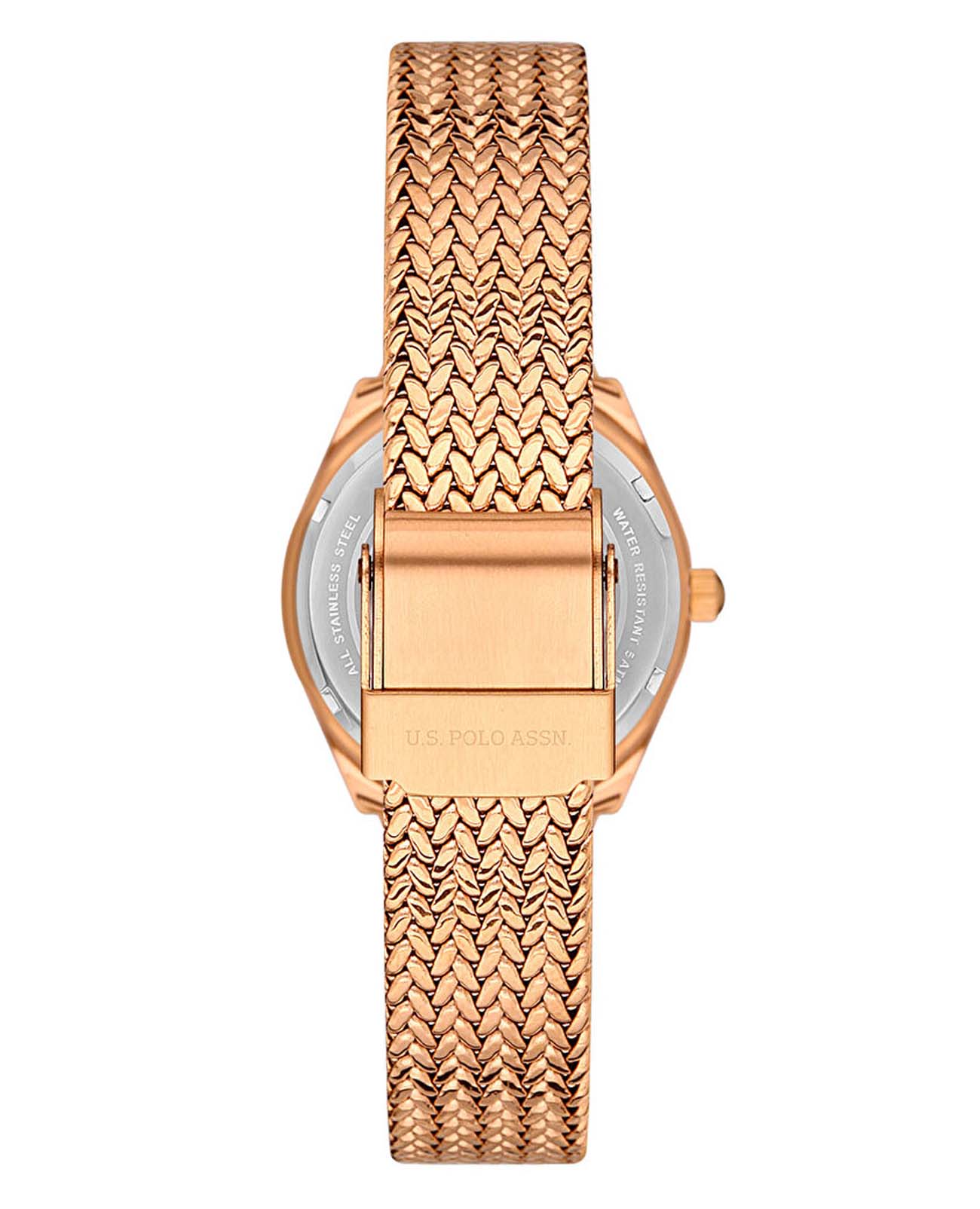 Женские часы U.S. Polo Assn. Stile USPA2062-03, кварцевый механизм с высокой точностью. Минеральное стеклоМинеральное стеклоМинеральное стекло представляет собой искусственно выращенный минерал кварца. Такое стекло отличается особой устойчивостью к повреждениям и царапинам. Уступает по некоторым качествам сапфировому стеклу. устойчивое к появлению царапин, обладающее высокой прозрачностью. Корпус изготовлен из нержавеющей стали с IP-покрытиемIP-покрытиеМетод ионного напыления. Демонстрирует повышенную устойчивость к истиранию, окислению и химическим веществам. Под воздействием высокого давления и температуры около 1500°C молекулы металла надёжно соединяются с частицами корпуса часов.. Класс водозащиты: 50 метров, позволит защитить корпус от случайных брызг или капель дождя. Стальной плетеный браслет с IP-покрытиемIP-покрытиеМетод ионного напыления. Демонстрирует повышенную устойчивость к истиранию, окислению и химическим веществам. Под воздействием высокого давления и температуры около 1500°C молекулы металла надёжно соединяются с частицами корпуса часов. на раскладном замкеРаскладной замокДанный вариант застежки используется только на часах с металлическим браслетом. Отличительная особенность такого крепления в том, что длина браслета становится универсальной и вы можете самостоятельно отрегулировать нужный вам размер – застежка просто двигается по браслету часов..