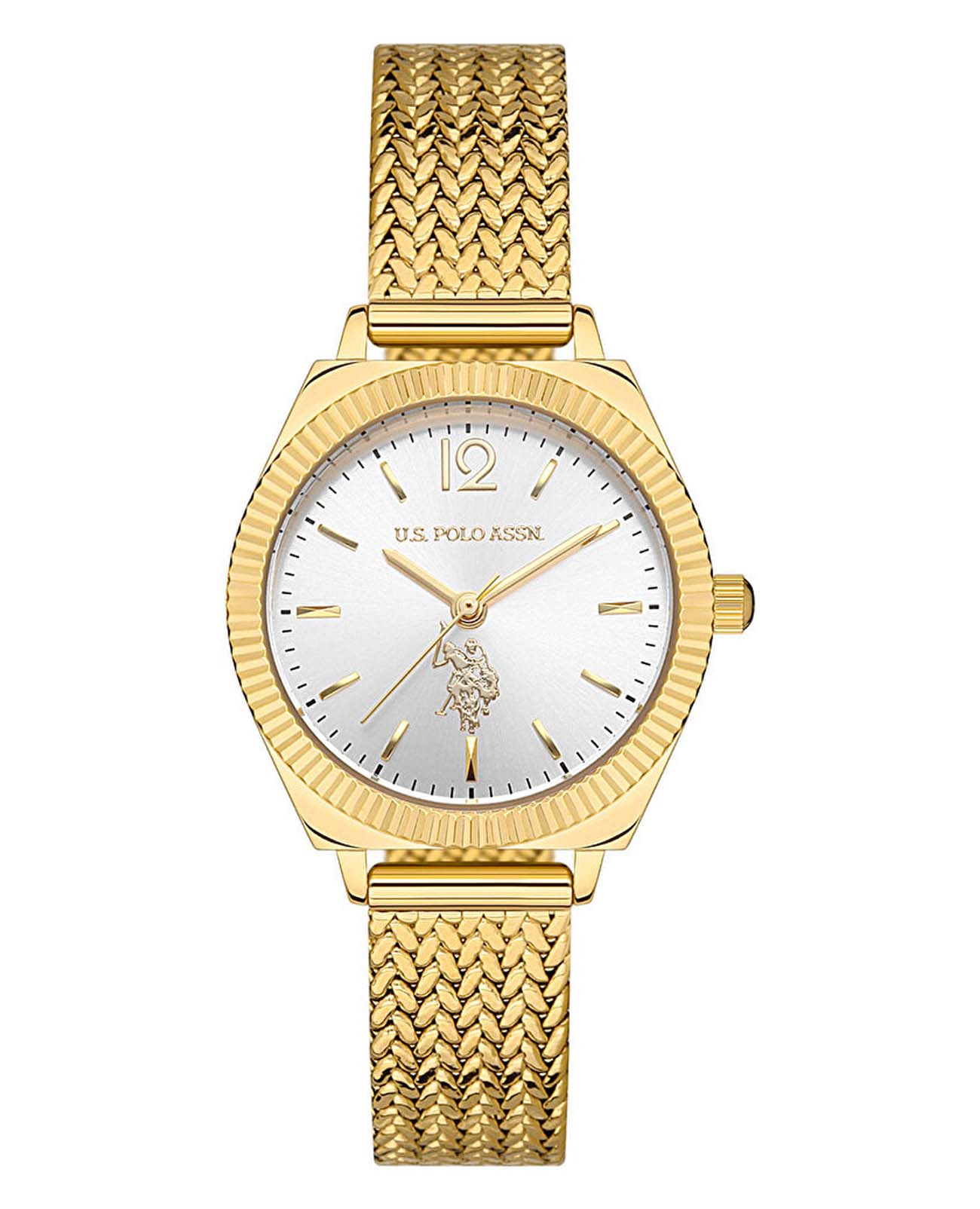 Женские часы U.S. Polo Assn. Stile USPA2062-04, кварцевый механизм с высокой точностью. Минеральное стеклоМинеральное стеклоМинеральное стекло представляет собой искусственно выращенный минерал кварца. Такое стекло отличается особой устойчивостью к повреждениям и царапинам. Уступает по некоторым качествам сапфировому стеклу. устойчивое к появлению царапин, обладающее высокой прозрачностью. Корпус изготовлен из нержавеющей стали с IP-покрытиемIP-покрытиеМетод ионного напыления. Демонстрирует повышенную устойчивость к истиранию, окислению и химическим веществам. Под воздействием высокого давления и температуры около 1500°C молекулы металла надёжно соединяются с частицами корпуса часов.. Класс водозащиты: 50 метров, позволит защитить корпус от случайных брызг или капель дождя. Стальной плетеный браслет с IP-покрытиемIP-покрытиеМетод ионного напыления. Демонстрирует повышенную устойчивость к истиранию, окислению и химическим веществам. Под воздействием высокого давления и температуры около 1500°C молекулы металла надёжно соединяются с частицами корпуса часов. на раскладном замкеРаскладной замокДанный вариант застежки используется только на часах с металлическим браслетом. Отличительная особенность такого крепления в том, что длина браслета становится универсальной и вы можете самостоятельно отрегулировать нужный вам размер – застежка просто двигается по браслету часов..