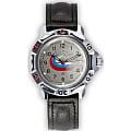 Российские механические часы. Корпус из высокопрочной стали с антикоррозийными свойствами. Ремешок из натуральной кожи черного цвета. Циферблат с арабскими цифрами и флагом России. Водонепроницаемость часов составляет 3 ATM. Минеральное стекло, устойчивое к появлению царапин.