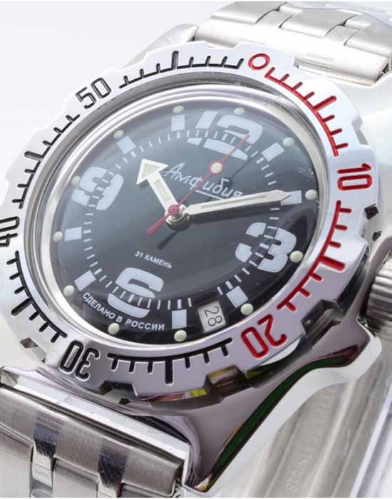 Российские механические часы Амфибия Восток Амфибия 110903, механический механизм (автоматический калибр) с высокой точностью. Класс водозащиты: 200 метров, позволит плавать, нырять и заниматься другими водными видами спорта. Корпус часов изготовлен из стали, цвета.