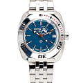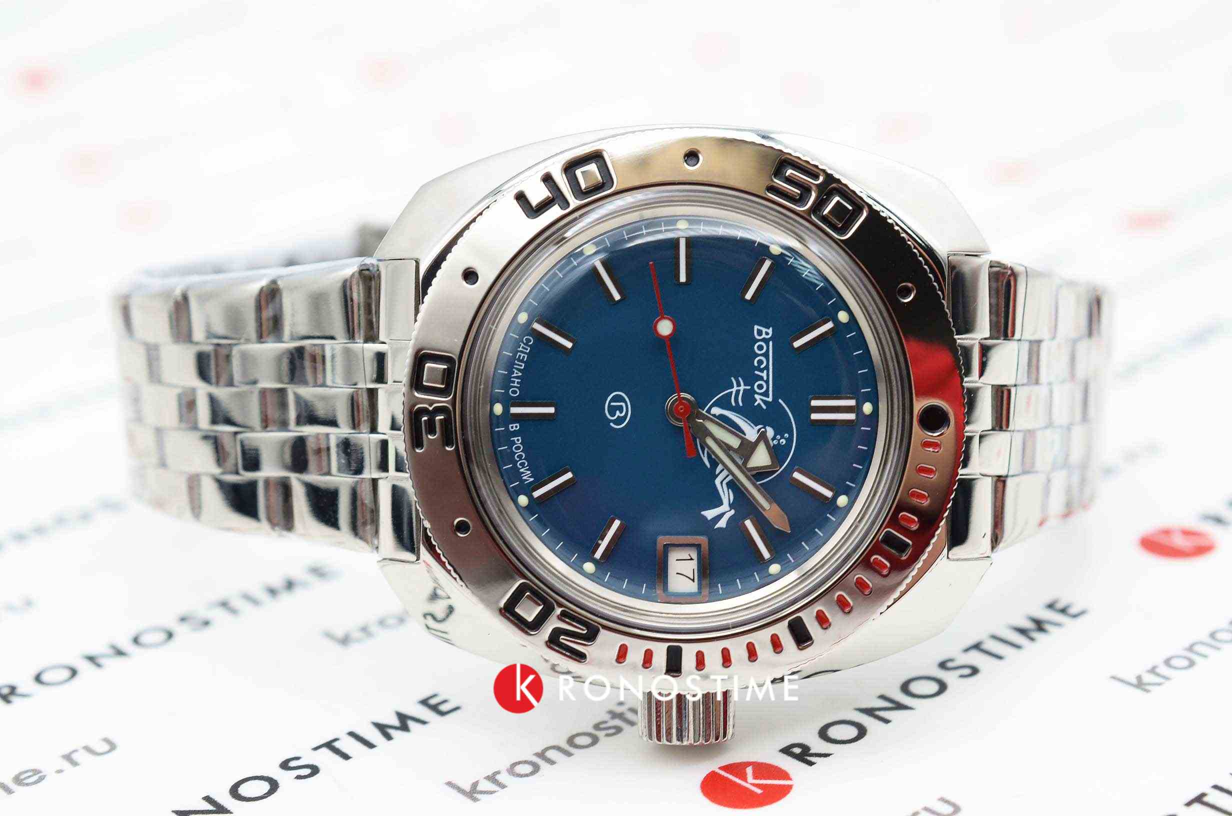 Наручные механические Часы Восток Амфибия Классика 710059. Механизм 2416 с автоподзаводом. Автоподзавод обеспечивает отсутствие необходимости завода наручных часов при постоянном ношении. Запас хода при полном заводе, не менее 31 час. Также есть ручной завод, можно вручную завести часы, если их не носили какое-то время до этого. Завинчивающаяся заводная головка из стали. Водозащита 200 метров, можно использовать для занятий дайвингом. Корпус изготовлен из высококачественной нержавеющий стали. Противоударное устройство оси баланса. Браслет с раскладывающейся застежкой.