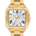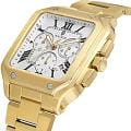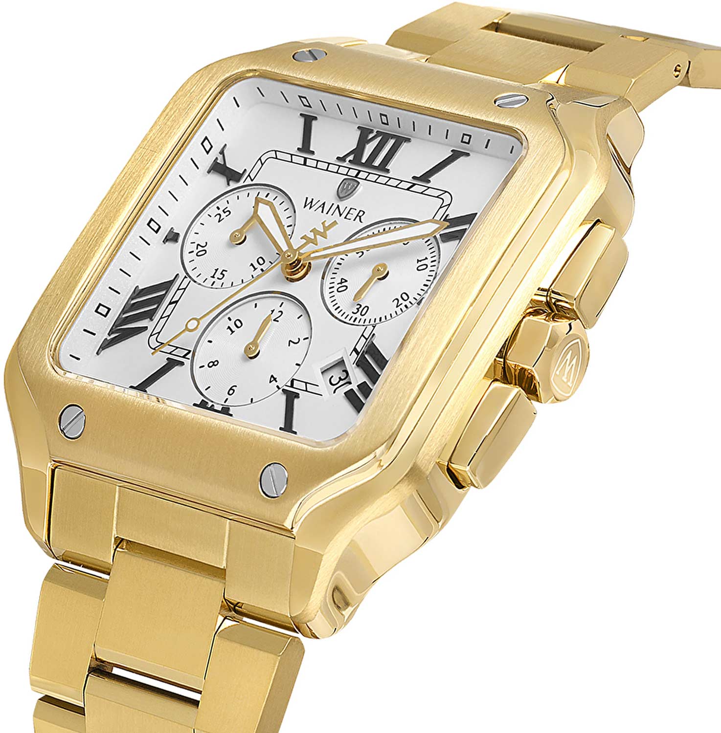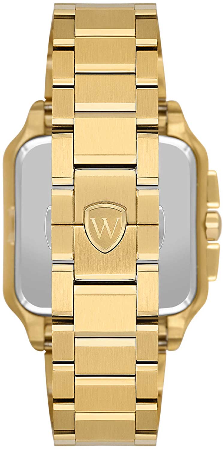Мужские кварцевые часы Wainer WA.18090-G — это стильный аксессуар, сочетающий в себе швейцарское качество и изысканный дизайн. Модель выполнена в квадратной форме из стали 316L с PVD-покрытиемPVDУльтратонкое покрытие наносится в технике вакуумного напыления, сочетает в себе нитрид титана особой прочности со слоем золота или оксида хрома. Несёт в себе декоративную или защитную функцию., что придаёт ей благородный внешний вид и устойчивость к царапинам. Корпус украшен декоративными винтами, подчёркивая внимание к деталям. Циферблат белого цвета выполнен по технологии , создающей эффект солнечных лучей, а его поверхность дополнена штриховыми метками и римскими цифрами. Секундная стрелка на конце декорирована буквой W, добавляя модели индивидуальности. Защиту механизма обеспечивает сапфировое стеклоСапфировое стеклоПрочный и надёжный материал из кристалла сапфира синтетического происхождения, характеризующийся особой твёрдостью и устойчивостью к царапинам и повреждениям., устойчивое к повреждениям. Окошко даты расположено в положении 4 часов, а гранёная заводная головка с защитой оснащена фирменным логотипом. Браслет из стали 316L с PVD-покрытием шириной 22 мм оснащён Раскладная застёжкаРаскладная застёжкаТакой тип застёжки используется только на браслетах из металла. Она никогда не раскрывается полностью, происходит разделение на 2 и более частей. Раскладывающая застёжка снизит вероятность потери часов к минимуму., обеспечивающей комфорт и надёжную фиксацию на запястье. Водонепроницаемость позволяет использовать модель при мытье рук или под лёгким дождём. Стрелки с люминесцентным покрытиемЛюминесцентное покрытиеПозволяет считывать показания времени в темноте. Производители наносят на стрелки, часовые индексы, безель или поверхность циферблата светонакопительный состав, дающий холодное свечение. обеспечивают отличную читаемость даже в условиях слабого освещения. Механизм калибра Ronda 5030.D гарантирует точность хода и надёжность. Эти часы станут универсальным аксессуаром для тех, кто ценит сочетание стиля, функциональности и швейцарского мастерства — идеальный выбор для повседневной носки и торжественных случаев.