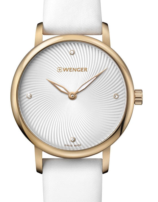 Женские швейцарские часы со стразами Wenger 01.1721.101, кварцевый механизм с высокой точностью. Класс водозащиты: 100 метров, позволит плавать, нырять и заниматься другими водными видами спорта. Корпус часов изготовлен из стали, золотистого цвета.