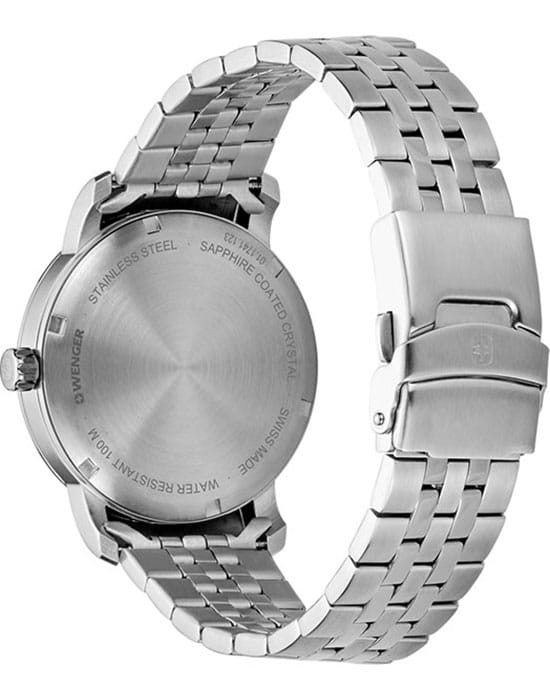 Швейцарские мужские часы в классическом стиле Wenger 01.1741.123, кварцевый механизм с высокой точностью. Класс водозащиты: 100 метров, позволит плавать, нырять и заниматься другими водными видами спорта. Корпус часов изготовлен из стали, цвета.